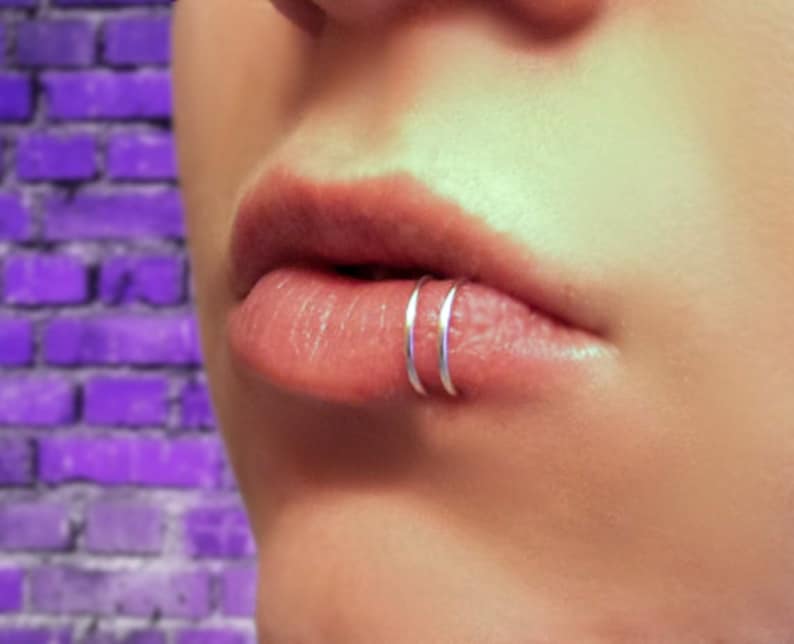 Spider Bites Lip Piercing With Hoop Rings.